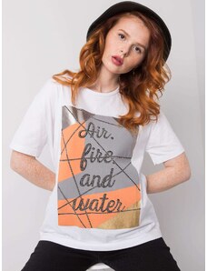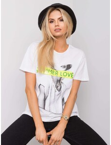 White cotton t-shirt with a print.