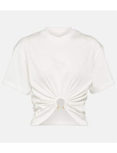 Rabanne Embellished cotton jersey crop top