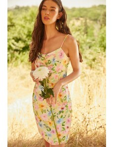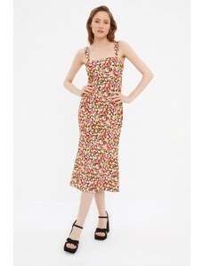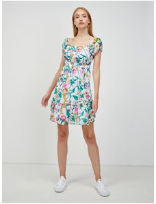 Бяла рокля на цветя Джулия с презрамки и отворени рамене - Размер S/М за гръдна до ок. 94-98 см, дължина 95 см,