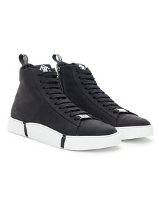 Ombre Men's high-top sneakers with matte texture and embossed logo - black