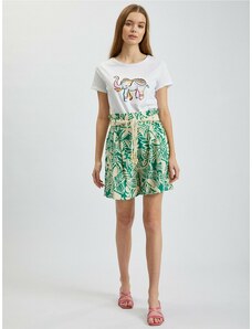 Orsay Creamy-Green Women's Patterned Shorts with Linen - Women's