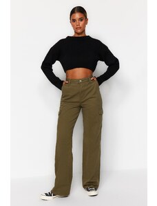 Trendyol каки висока талия широк крак дънки с товарен джоб