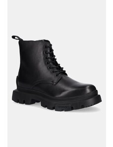 HUGO Боти с връзки 'Draven' тъмнокафяво / черно