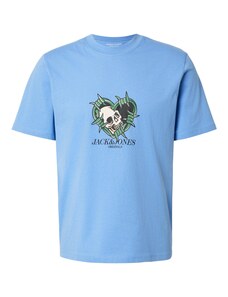 JACK & JONES Тениска 'JORCATSKILLS SKULL' морскосиньо / светлосиньо / зелено