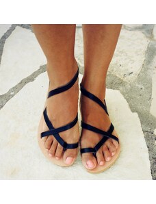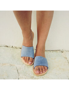 Grecian Sandals Blue Suede Leather Slides