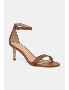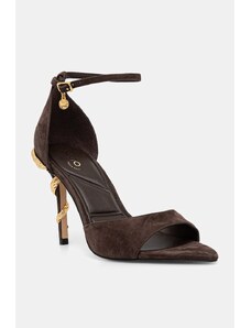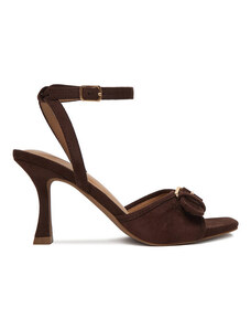 These sandals in a rich walnut shade are the embodiment of warm elegance. Soft velour, a comfortable insole, and a square toe create a sophisticated simplicity and comfort, while the slender heel adds a delicate yet stable touch.