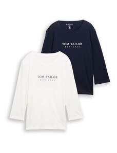 TOM TAILOR Тениска тъмносиньо / мръсно бяло