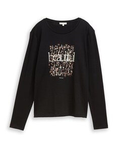 TOM TAILOR Тениска камел / черно / бял памук