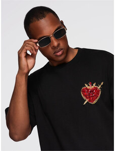 Ombre Men's cotton T-shirt with jewelry applique on chest - black