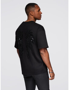 Ombre Men's cotton T-shirt with sequin wing motif on back - black