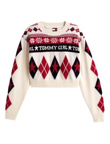 Tommy Jeans Пуловер 'FAIR ISLE' екрю / алено / черно