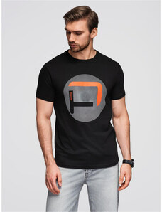 Ombre Men's t-shirt with embroidery on chest - black